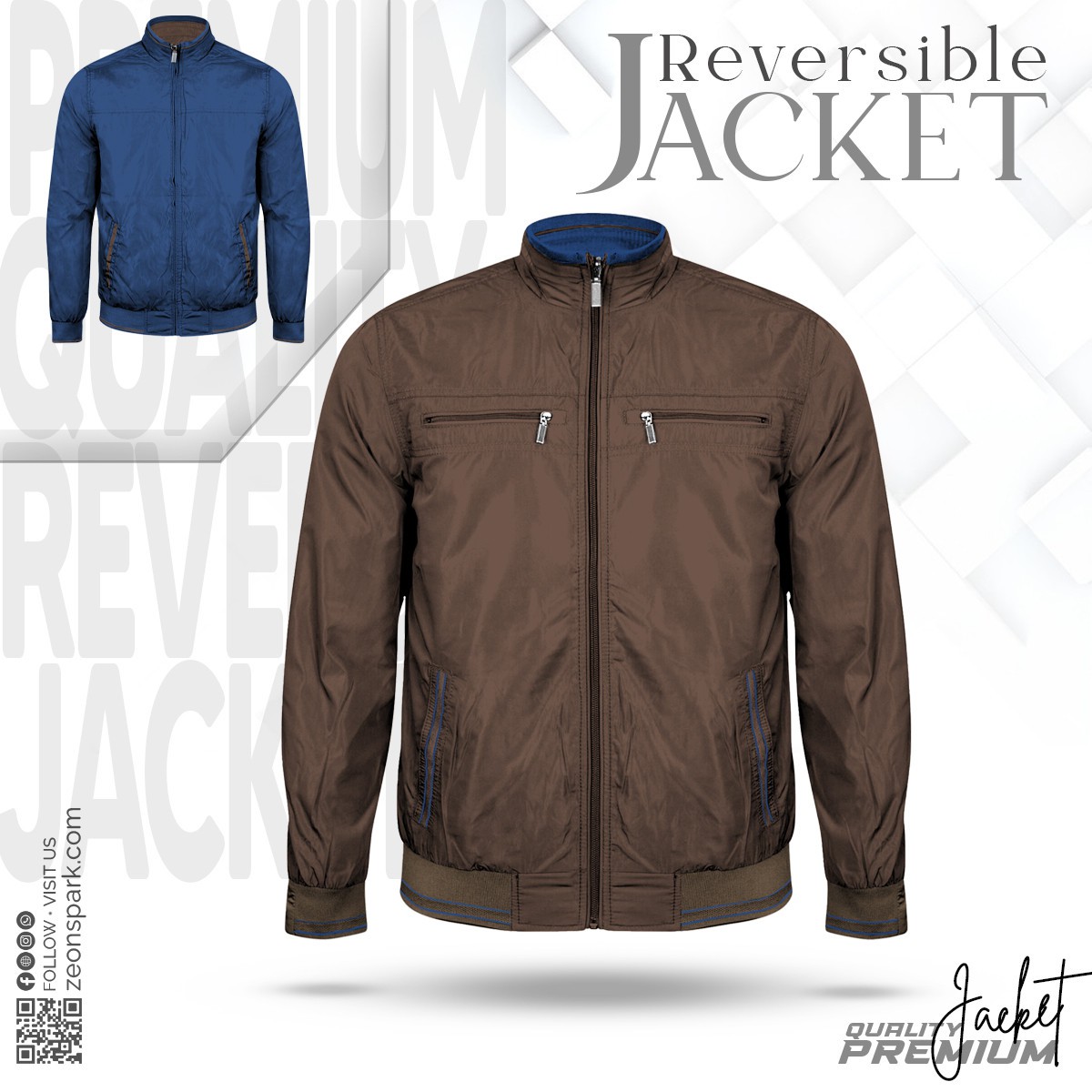 Mens Reversible Padding Jacket Coffee Blue